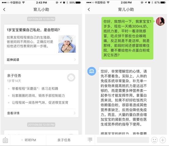 家庭育兒消費市場擴大,育兒記錄工具實現精準化場景推送 母嬰消費市場盡管容量巨大,新機會叢生,但既有品牌在供應鏈、市場等方面形成已定的壁壘,新玩家機會已不多。反觀母嬰服務市場,起步時間晚,每個細分領域尚無具有統治力的品牌,新玩家的機會還較為豐富。 根據易觀報告,家庭育兒線下消費場景較為豐富,從醫療、早教、旅游、親子等場景,育兒記錄工具產品可通過強關系信任增強用戶粘性,利用流量與多消費場景的協同打造能豐富流量變現方式,獲取更多市場機會。 以家庭育兒記錄工具頭部代表之一的親寶寶為例,在數千萬年輕家庭沉淀的多維度數據基礎上,親寶寶利用大數據和深度學習技術,結合每個家庭孩子的具體成長發育水平,對爸爸媽媽、爺爺奶奶等不同身份的用戶進行精準的“千人千面”推送;谠撨壿,親寶寶已經落地了精準廣告、智能育兒助手、電商等場景的大數據應用。在消費升級,以及消費向線上遷移的大背景下,通過挖掘不同家庭孩子成長過程中的各階段需求,具有很大的商業化發展空間。