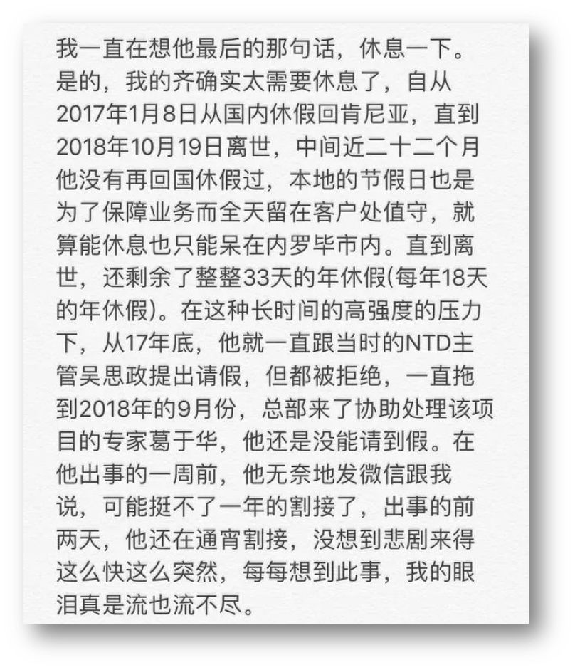 直到去世前,他還有多達33天的年假沒休,可是再也沒有機會用了。