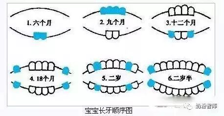 1、中切牙:下頜6個月;上頜7個半月 2、側切牙:下頜7個月;上頜9個月 3、第一乳磨牙:下頜12個月;上頜14個月 4、犬牙:下頜16個月;上頜18個月 5、第二乳磨牙:下頜20個月;上頜2歲 有的孩子會有個別牙齒的萌出順序顛倒,但最終并不影響牙齒的排列,無需處理。