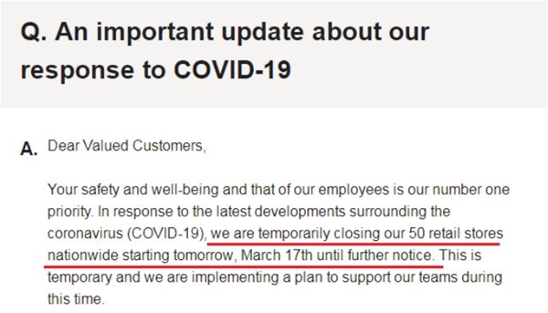 值得一提的還有,公司過去一周已經關閉了波蘭、西班牙、捷克、保加利亞、比利時、法國、奧地利、盧森堡、哈薩克斯坦、瑞士、希臘、斯洛維尼亞、立陶宛、秘魯、烏克蘭、菲律賓、馬來西亞以及塞浦路斯的所有門店。但H&M在中國的業務卻逐漸復蘇,目前516家分店中的500家已經恢復營業。 而Gap預計受疫情影響,2020年第一財季銷售額將損失約1億美元。同時表示,Gap今年將在全球范圍內關閉約170家品牌門店。 同一日,德國運動品牌巨頭阿迪達斯也宣布,將暫時關閉歐洲和北美的全部直營門店。根據計劃,歐洲門店將于3月18日至29日關閉,美國和加拿大門店將于3月17日至29日關閉。 此外,日本服飾品牌優衣庫的運營公司迅銷集團也于3月17日宣布,由于疫情擴大,本日起,美國境內的全部50家門店均暫停營業。